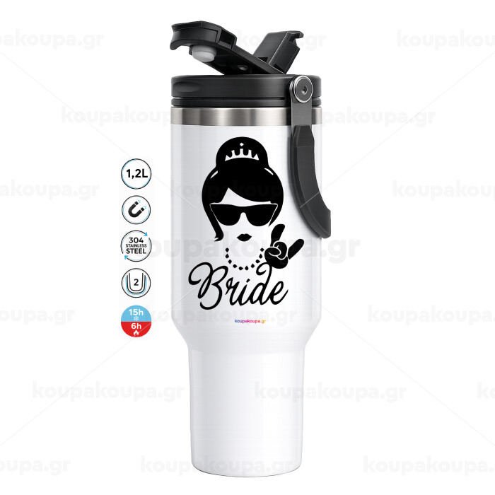Team Bride, Mega Stainless steel Tumbler with lid, double wall 1,2L