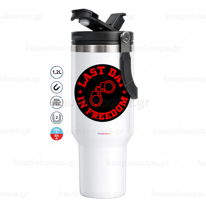 Last day in freedom, Mega Stainless steel Tumbler with lid, double wall 1,2L