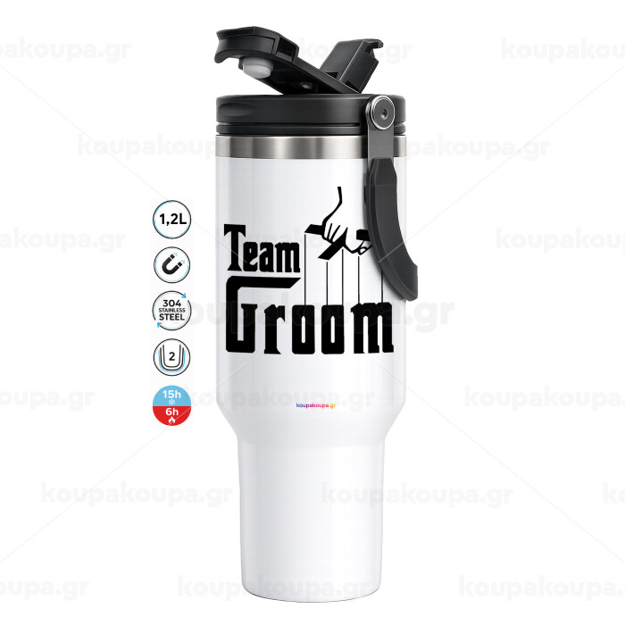Team Groom, Mega Stainless steel Tumbler with lid, double wall 1,2L