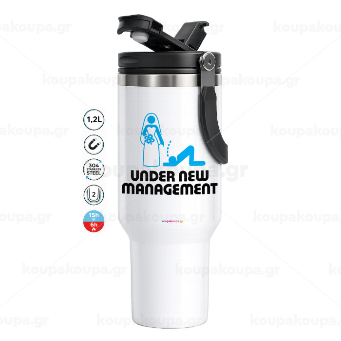Under new Management, Mega Stainless steel Tumbler with lid, double wall 1,2L