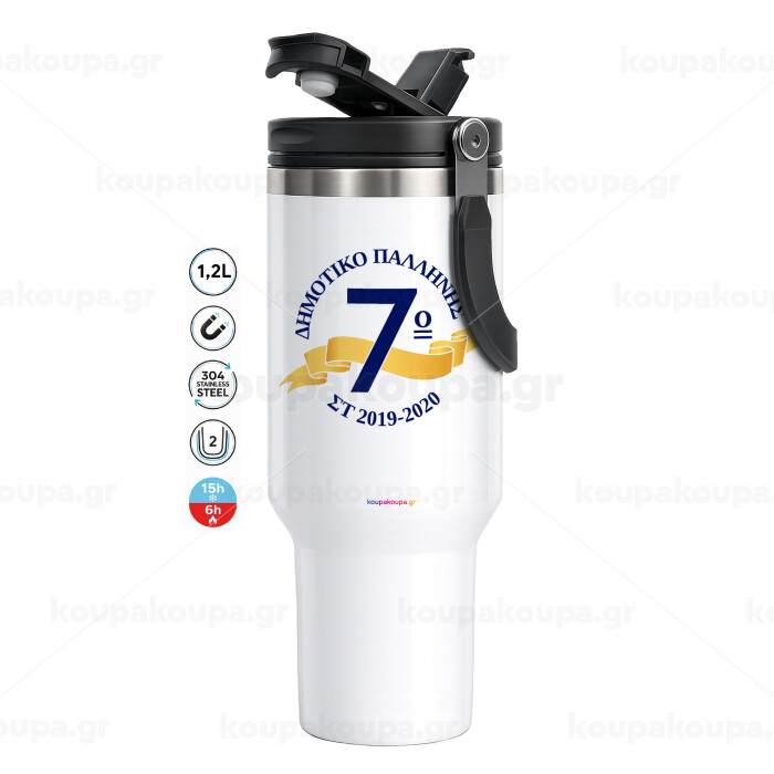 Έμβλημα Σχολικό λευκή, Mega Stainless steel Tumbler with lid, double wall 1,2L