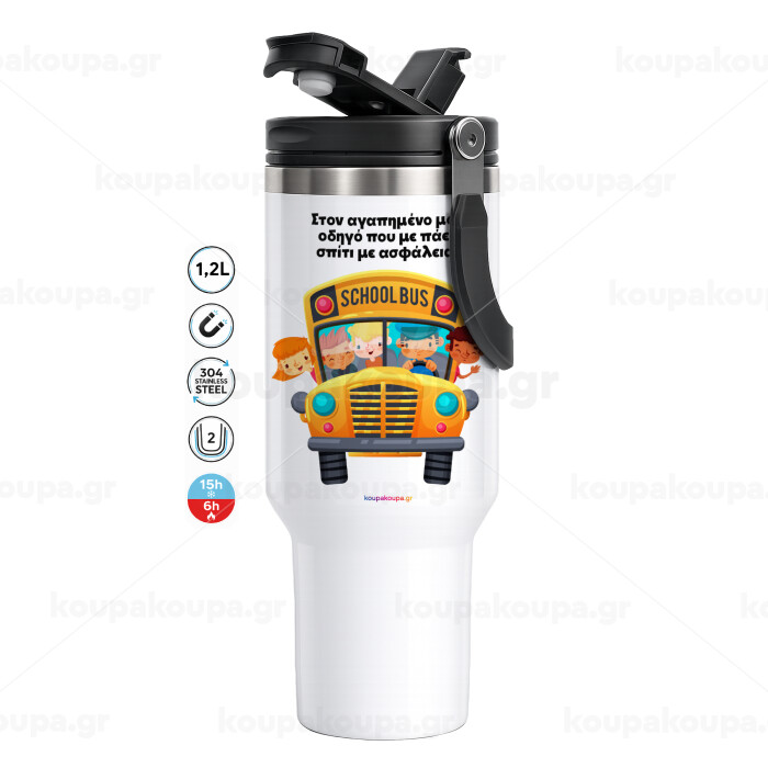 Στον αγαπημένο μου οδηγό που με πάει σπίτι με ασφάλεια!, Mega Stainless steel Tumbler with lid, double wall 1,2L