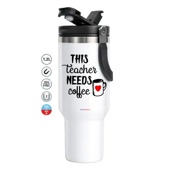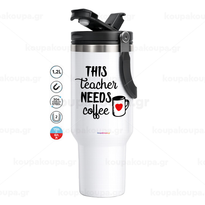 Τhis teacher needs coffee, Mega Stainless steel Tumbler with lid, double wall 1,2L