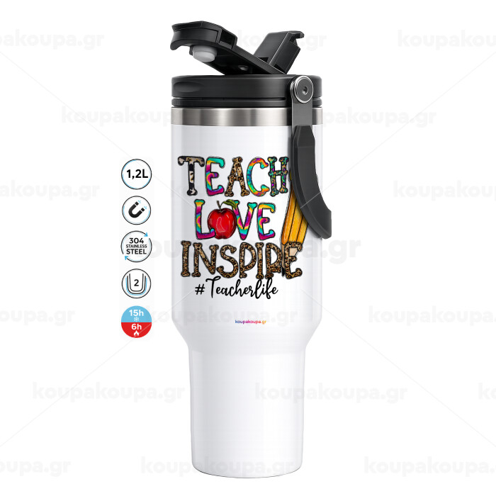 Teach, Love, Inspire, Mega Stainless steel Tumbler with lid, double wall 1,2L