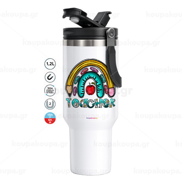 Η καλύτερη δασκάλα, Mega Stainless steel Tumbler with lid, double wall 1,2L