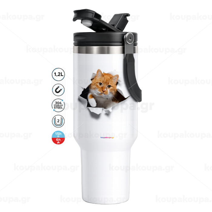 Cat cracked, Mega Stainless steel Tumbler with lid, double wall 1,2L