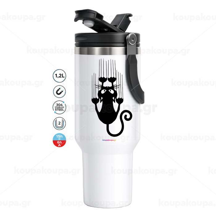 Cat scratching, Mega Stainless steel Tumbler with lid, double wall 1,2L