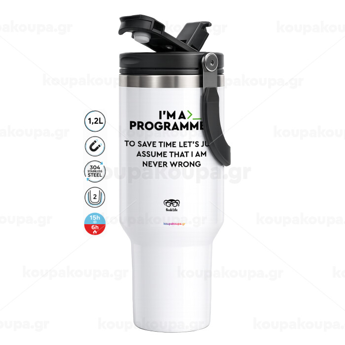 I’m a programmer Save time, Mega Stainless steel Tumbler with lid, double wall 1,2L