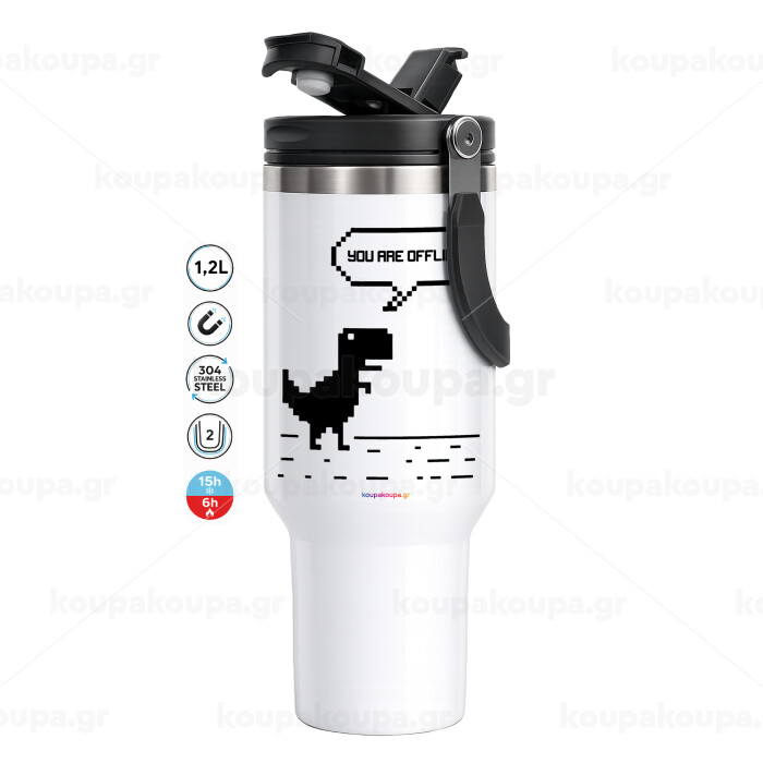 You are offline dinosaur, Mega Stainless steel Tumbler with lid, double wall 1,2L