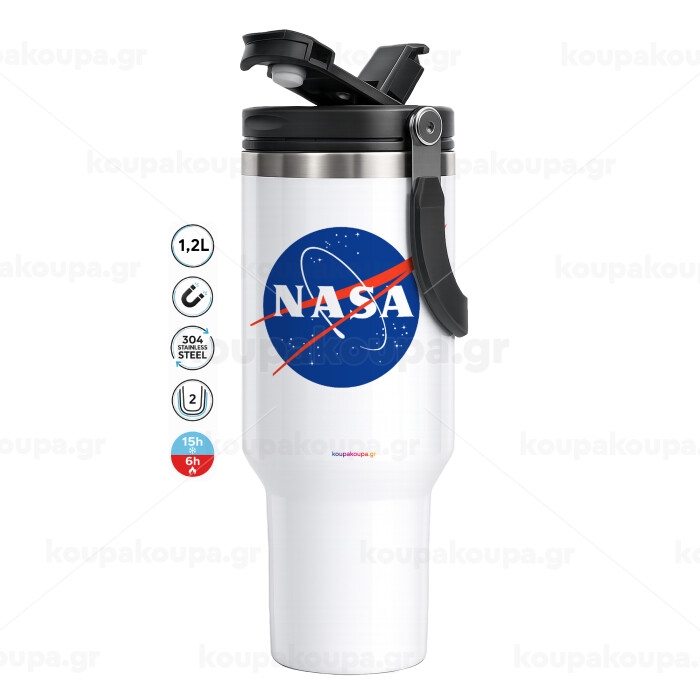 NASA Badge, Mega Stainless steel Tumbler with lid, double wall 1,2L
