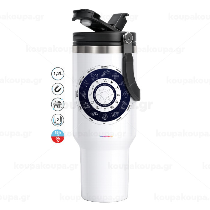 Ζωδιακός κύκλος, Mega Stainless steel Tumbler with lid, double wall 1,2L
