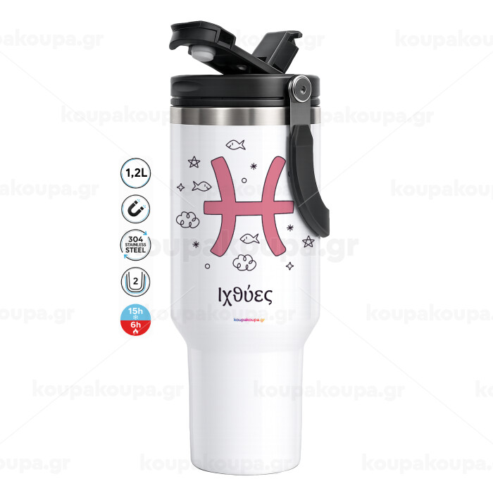 Ζώδια Ιχθύες, Mega Stainless steel Tumbler with lid, double wall 1,2L