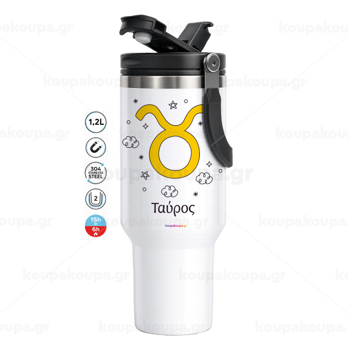 Ζώδια Ταύρος, Mega Stainless steel Tumbler with lid, double wall 1,2L