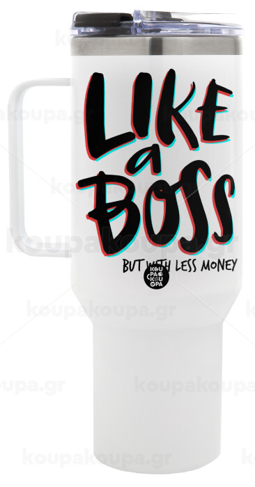 Like a boss, but with less money!!!, Mega Stainless steel Tumbler with lid, double wall 1,2L