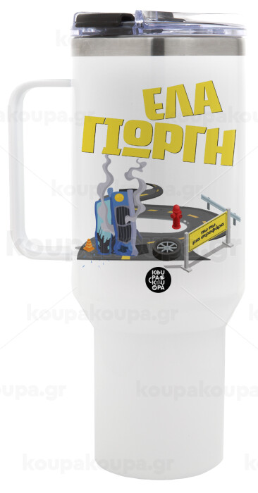 Έλα Γιώργη, πω πω μια στροφάρα, Mega Stainless steel Tumbler with lid, double wall 1,2L