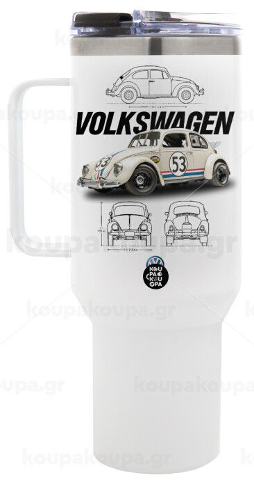 Volkswagen Beetle, Mega Stainless steel Tumbler with lid, double wall 1,2L