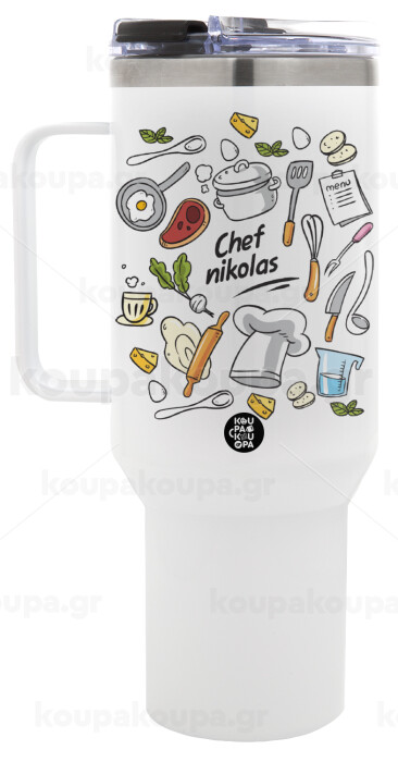 Chef με όνομα, Mega Stainless steel Tumbler with lid, double wall 1,2L