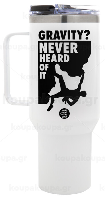 Gravity? Never heard of that!, Mega Stainless steel Tumbler with lid, double wall 1,2L