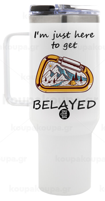 I'm just here to get Belayed, Mega Stainless steel Tumbler with lid, double wall 1,2L