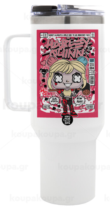 Harley Quinn (Χάρλεϊ Κουίν), Mega Stainless steel Tumbler with lid, double wall 1,2L