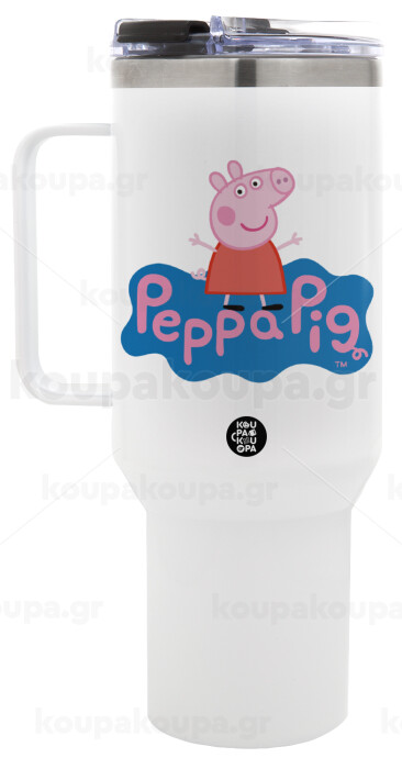 Πέππα το γουρουνάκι μπλε με όνομα, Mega Stainless steel Tumbler with lid, double wall 1,2L