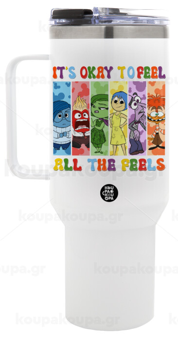 Inside Out It's Okay To Feel All The Feels , Mega Stainless steel Tumbler with lid, double wall 1,2L