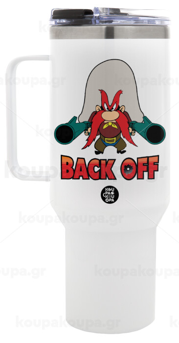 Yosemite Sam Back OFF, Mega Stainless steel Tumbler with lid, double wall 1,2L