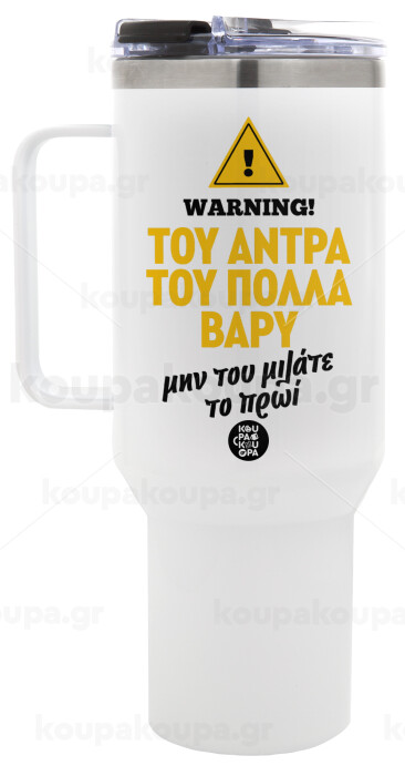 Του άντρα του πολλά βαρύ, Mega Stainless steel Tumbler with lid, double wall 1,2L