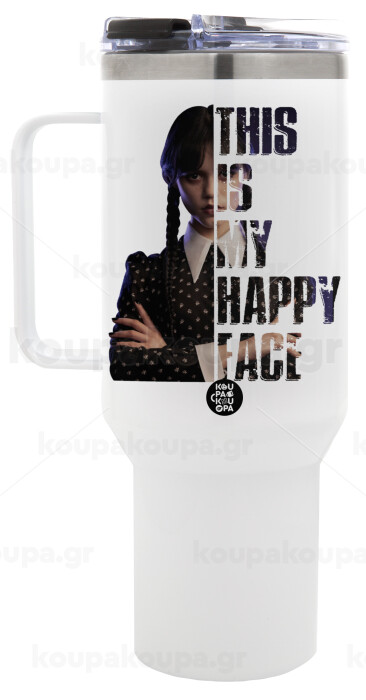 Wednesday, This is my happy face, Mega Stainless steel Tumbler with lid, double wall 1,2L