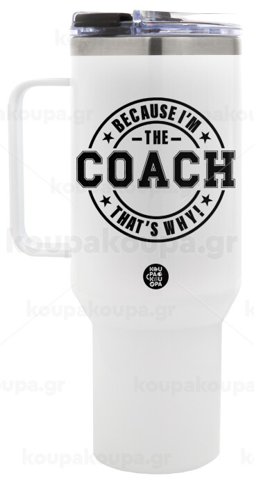 Because i'm the Coach, Mega Stainless steel Tumbler with lid, double wall 1,2L