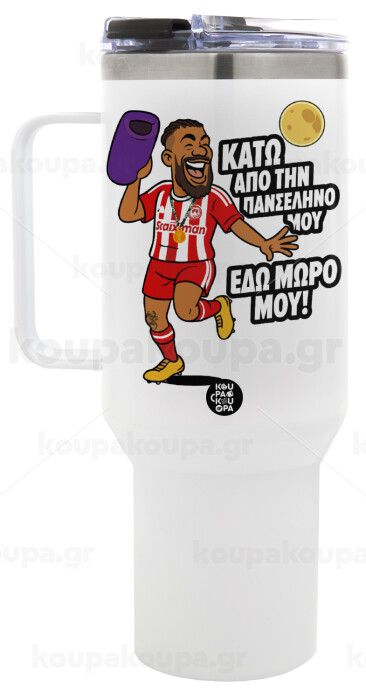Ροντινέι, "ΚΑΤΩ ΑΠΟ ΤΗΝ ΠΑΝΣΕΛΗΝΟ ΜΟΥ!", Mega Stainless steel Tumbler with lid, double wall 1,2L
