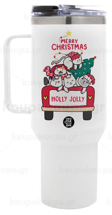 Merry Christmas cats in car, Mega Stainless steel Tumbler with lid, double wall 1,2L