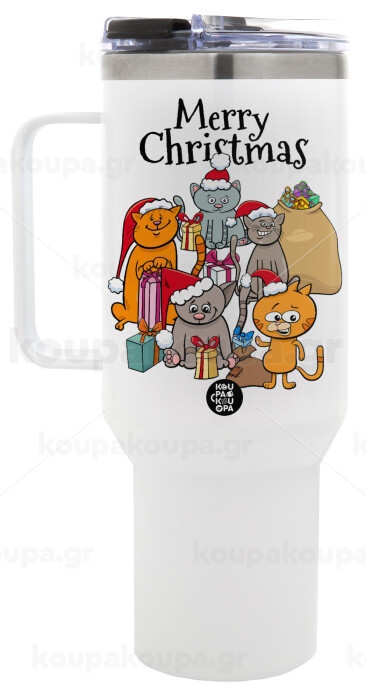 Merry Christmas Cats, Mega Stainless steel Tumbler with lid, double wall 1,2L