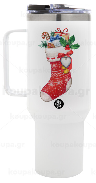 Xmas boot, Mega Stainless steel Tumbler with lid, double wall 1,2L