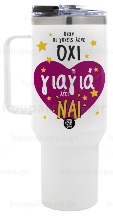 Όταν οι γονείς λένε ΟΧΙ, η γιαγιά λέει ΝΑΙ, Mega Stainless steel Tumbler with lid, double wall 1,2L