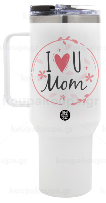 I Love you Mom pink, Mega Stainless steel Tumbler with lid, double wall 1,2L