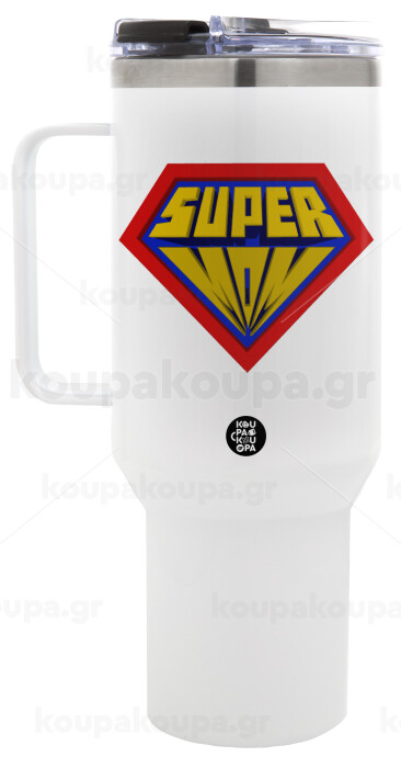 Super Mom 3D, Mega Stainless steel Tumbler with lid, double wall 1,2L