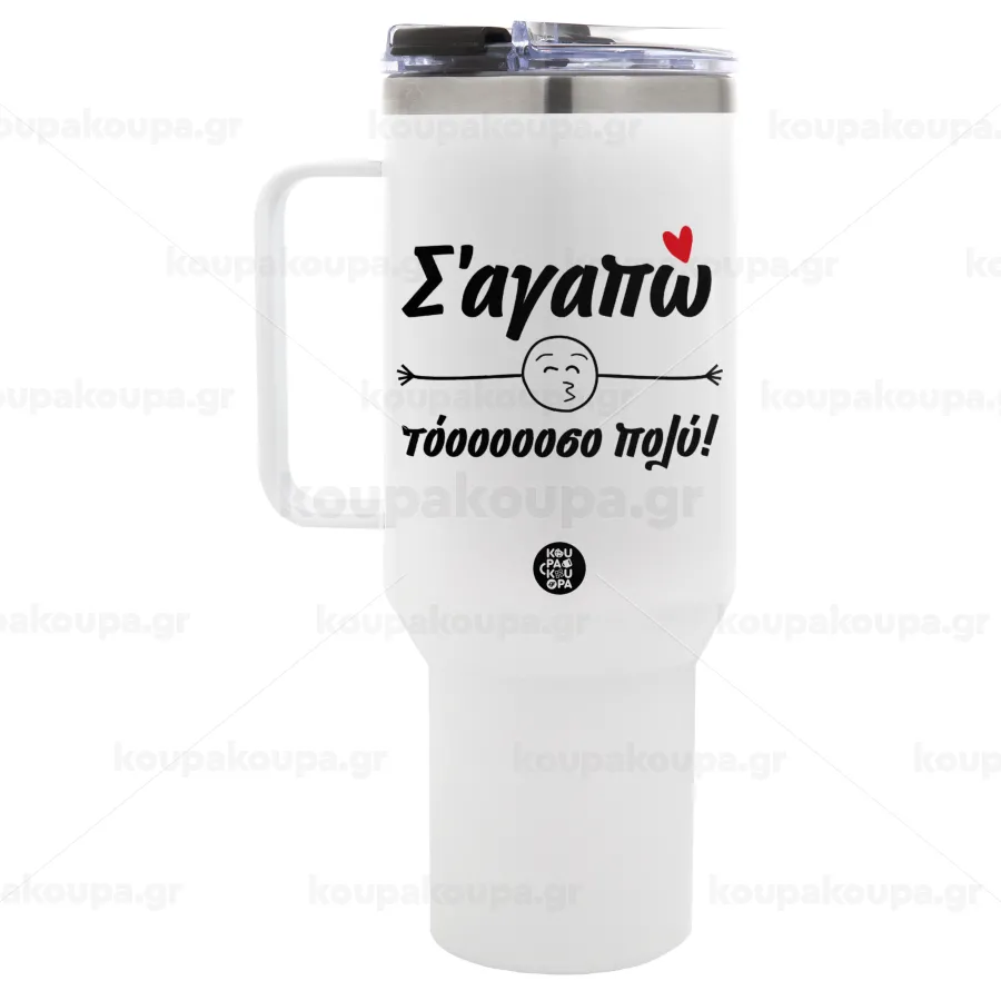 Σ΄ αγαπώ τόοοοοοσο πολύ!!!, Mega Stainless steel Tumbler with lid, double wall 1,2L