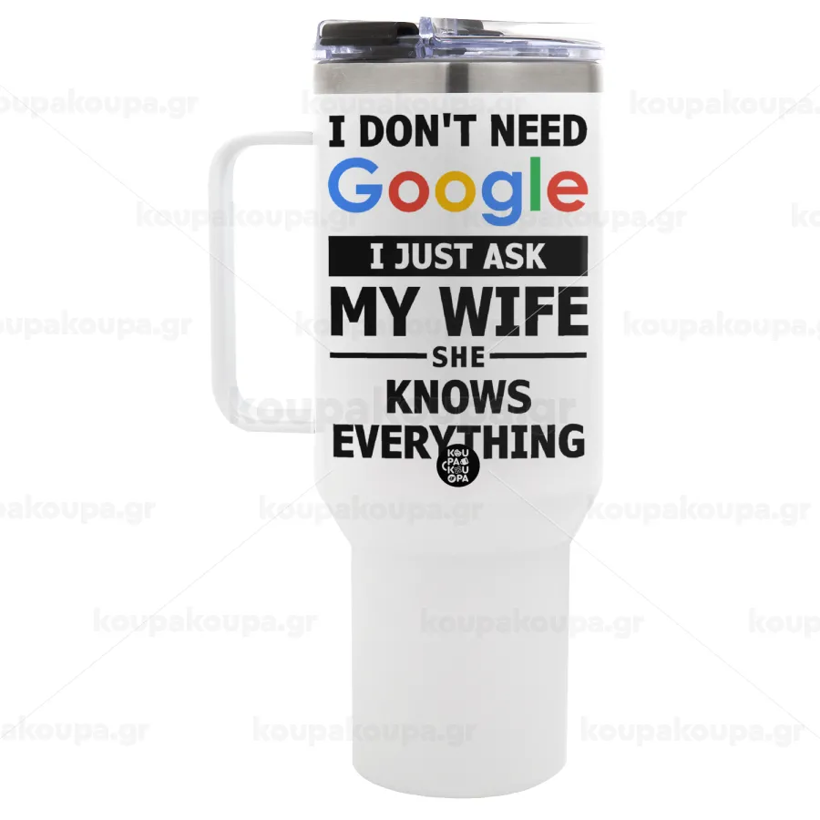 I don't need Google, just ask my WIFE, Mega Stainless steel Tumbler with lid, double wall 1,2L