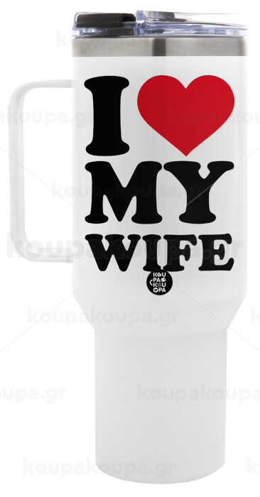 I Love my Wife, Mega Stainless steel Tumbler with lid, double wall 1,2L