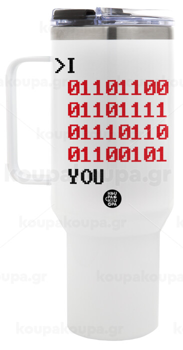 I .... YOU, binary secret MSG, Mega Stainless steel Tumbler with lid, double wall 1,2L