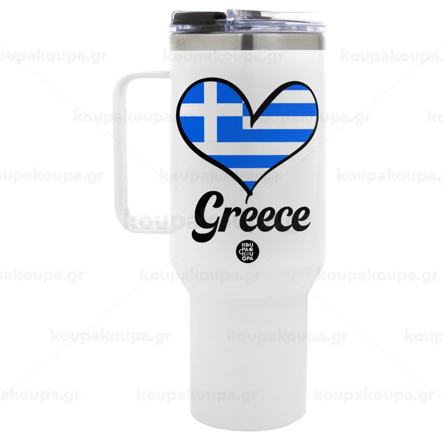 Greece flag, Mega Stainless steel Tumbler with lid, double wall 1,2L