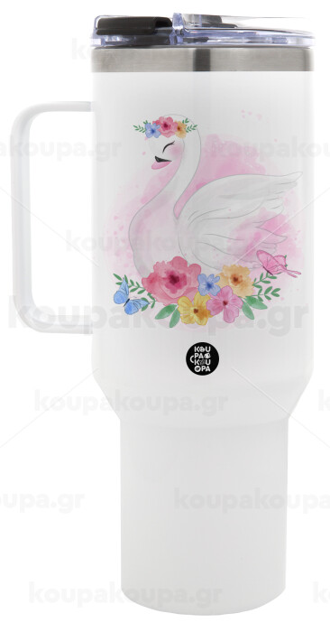 White swan, Mega Stainless steel Tumbler with lid, double wall 1,2L