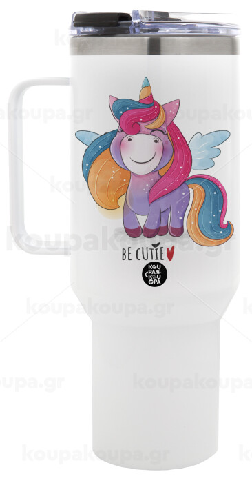 Pink unicorn, Mega Stainless steel Tumbler with lid, double wall 1,2L