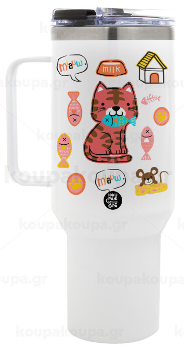 Cats and Fishes, Mega Stainless steel Tumbler with lid, double wall 1,2L