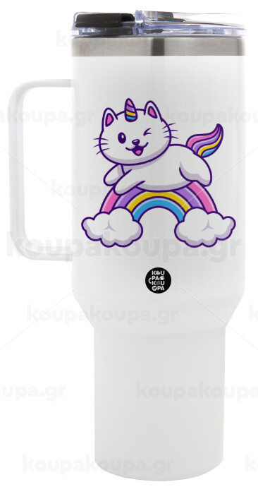 Cute cat unicorn, Mega Stainless steel Tumbler with lid, double wall 1,2L