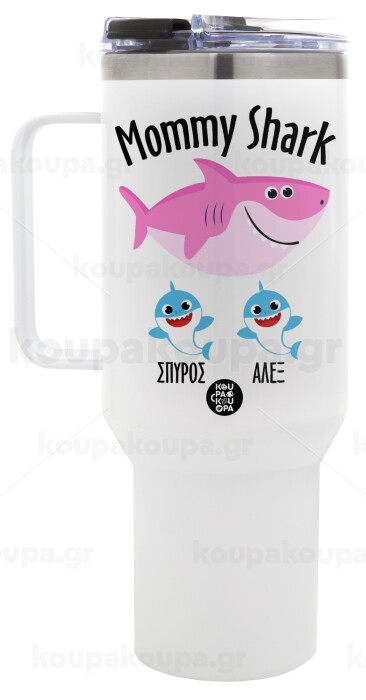 Mommy Shark (με ονόματα παιδικά), Mega Stainless steel Tumbler with lid, double wall 1,2L