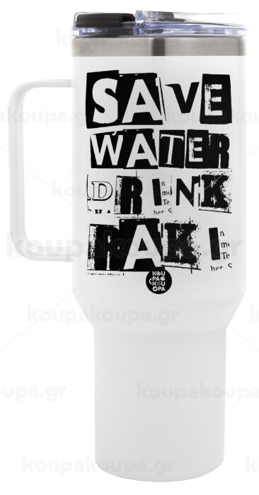 Save Water, Drink RAKI, Mega Stainless steel Tumbler with lid, double wall 1,2L