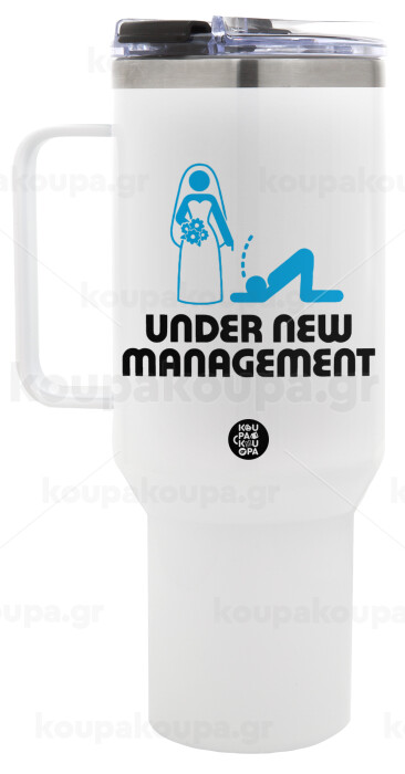 Under new Management, Mega Stainless steel Tumbler with lid, double wall 1,2L