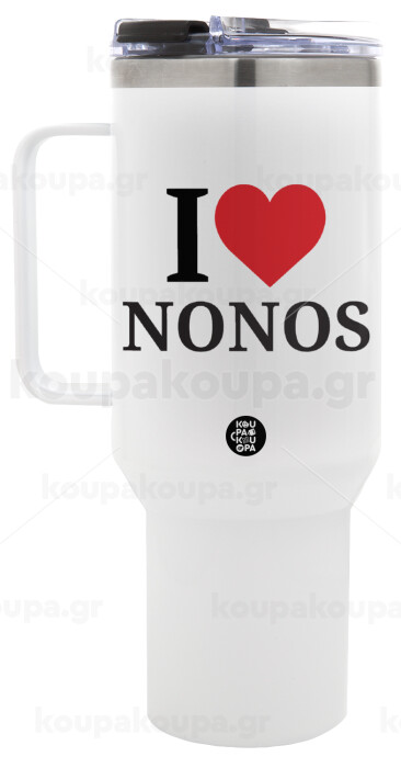 I Love ΝΟΝΟΣ, Mega Stainless steel Tumbler with lid, double wall 1,2L